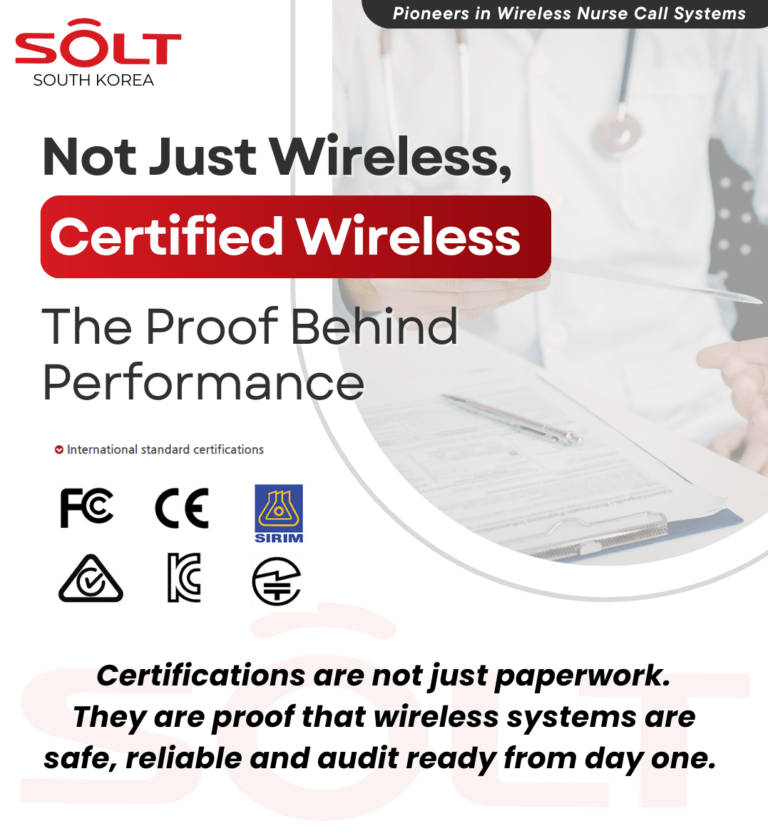 Modern wireless nurse call systems come with international certifications that wired systems do not even require. Products designed for global healthcare markets carry CE and FCC certifications, ensuring they meet strict benchmarks for radio safety, electromagnetic compatibility and product reliability. These are the same standards followed by medical devices used worldwide.